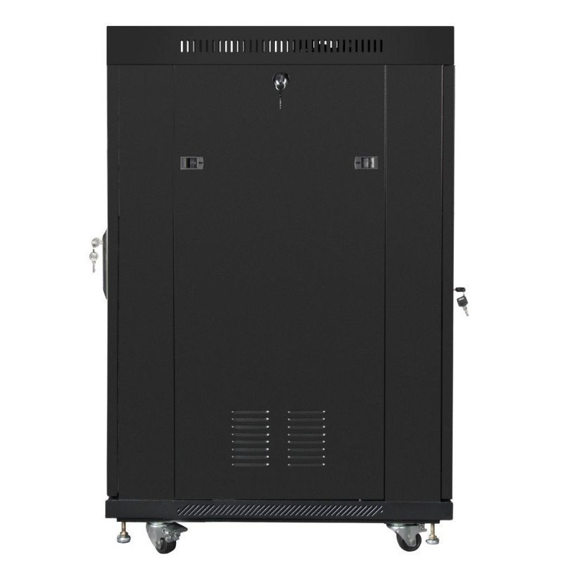 Szafa oferuje 22 jednostki wysokości (22U), umożliwiając instalację wielu urządzeń: serwerów, switchy, UPS-ów i innego sprzętu IT lub energetycznego.